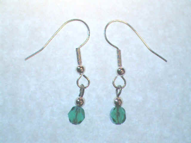 Glass Bead Drop Earrings $4.00 USD Shown are green glass beads with silver-tone earpieces and silver-tone beads. This is a very nice, feminine glass bead drop earring that is fire-polished and faceted that can be worn with either formal or casual wear. These earrings are light in weight and comes in many different colors with nickel-free silver or gold-toned ear wires in either fish hook, kidney, or round wire, Sterling Silver or Stainless Steel Fish Hook ear pieces. Earrings made with Sterling Silver or gold-filled metal parts and semi-precious beads are three dollars extra per pair of earrings. Please specify type of bead and ear wire desired. |
