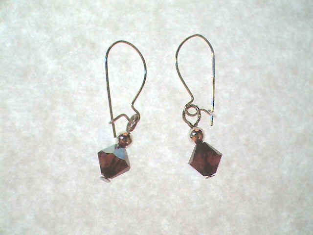 Ruby Bicone Droplets $4.00 USD Shown are fire-polished ruby bicone glass beads with gold plated beads with gold-tone hypoallergenic kidney ear wires. Comes in many choices of metal and glass bead colors or semi-precious beads. Very feminine, dainty, can be worn for formal or casual occasions. Semi-precious beads, gold-filled or sterling silver combinations are $2.00 extra. Please specify type of bead and ear wire material desired. |