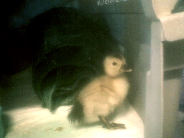 Little Junebugk, born 23 days after half-sister Twee. Bugk looks like a tattered Mallard, as she is a Muscovy/Mallard mix.