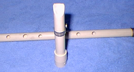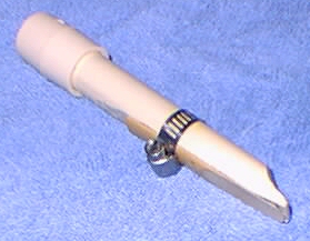 Note: Wood can be substituted for FIMO plug. Sculpey Modeling compound can be used as well. If you break through the thin overhang area, take a wood dowel that fits snuggly into the pipe and drill a wide hole through it so that air can freely pass through and place into the air where the over- hang should go. (Use CPVC orange colored cement)